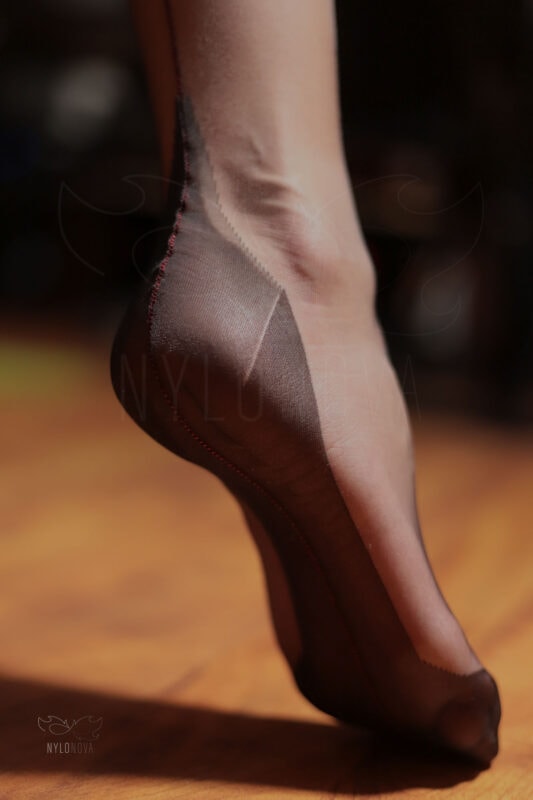 Cervin nylon stockings have a quite „hard texture” so there is no sensation of them being very soft like, for example, with Gio Stockings or Secrets in Lace (more about them in other posts), which does not mean that they aren’t quite a pleasure to the touch! They definitely are! ? When rubbing legs against one another, we hear the characteristic rustling ? It’s the magic sound of nylon stockings!